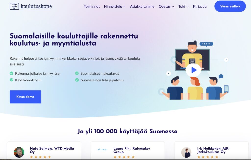 Koulutuskone on täysin tyhjästä kehittämämme verkkokoulutus- ja myyntialusta. Näytän ja kerron brändikoulun jokaisessa vaiheessa kyseinen asia on ratkaistu Koulutuskoneen kohdalla.