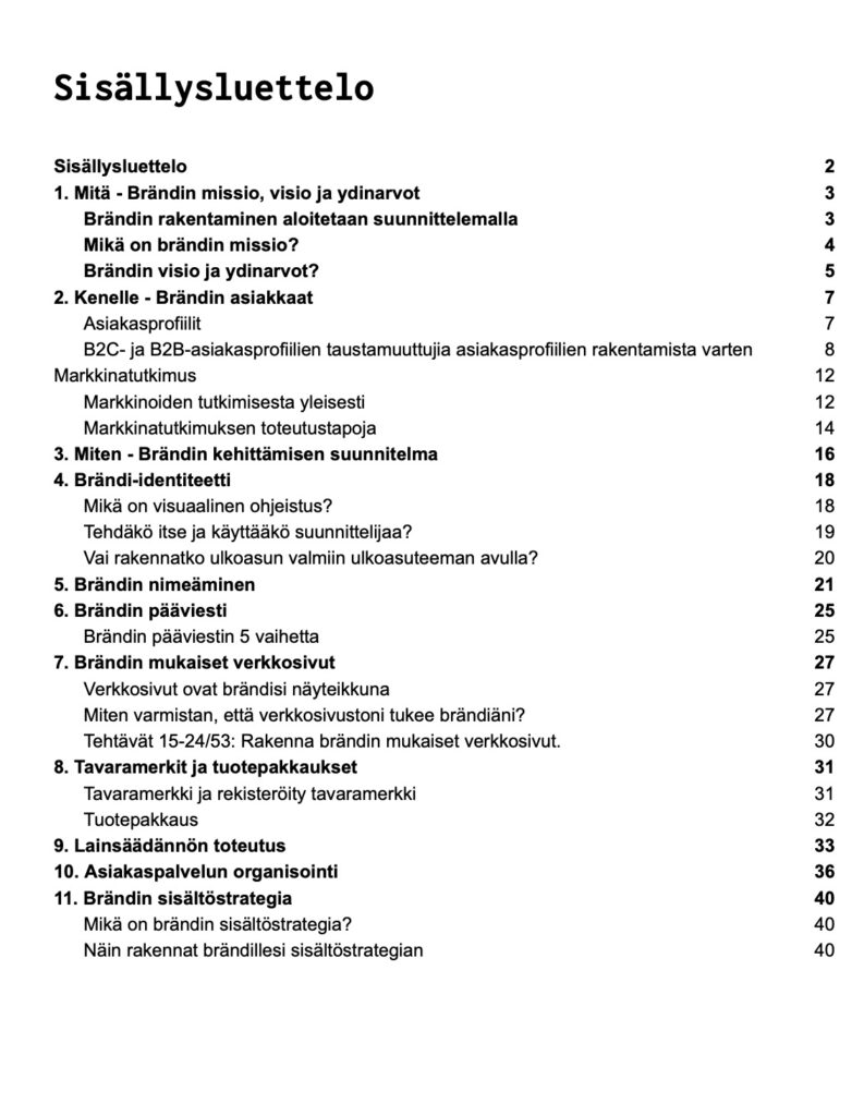 Lisäksi brändikoulu sisältää e-kirjan: Opi rakentamaan yrityksesi brändi itse.